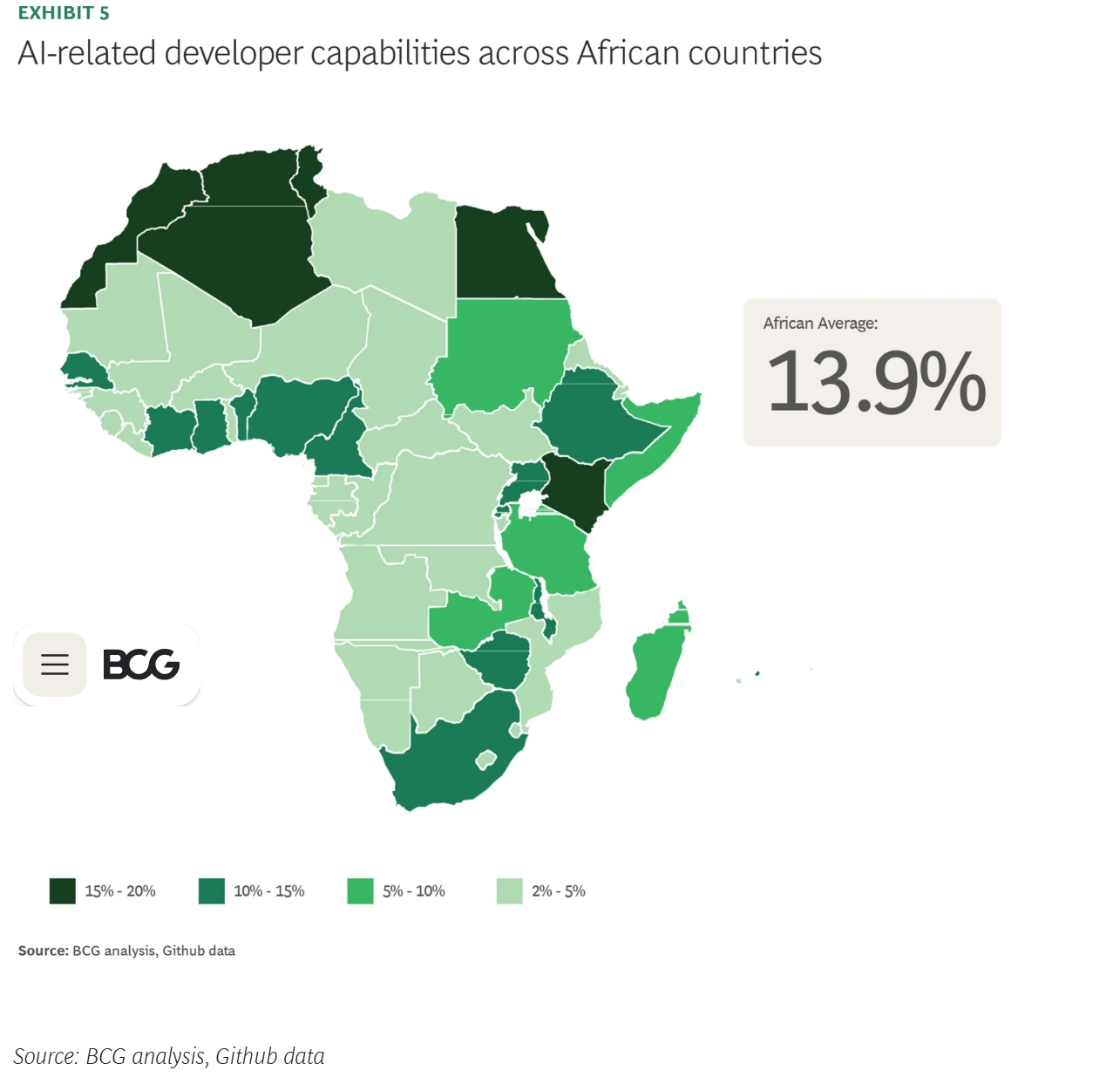 - L’Afrique du Sud, l’Égypte et le Nigeria dominent en nombre absolu de développeurs.